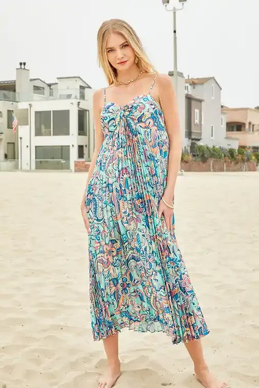 Bustier Pleated Midi Dress • Lush Paisley