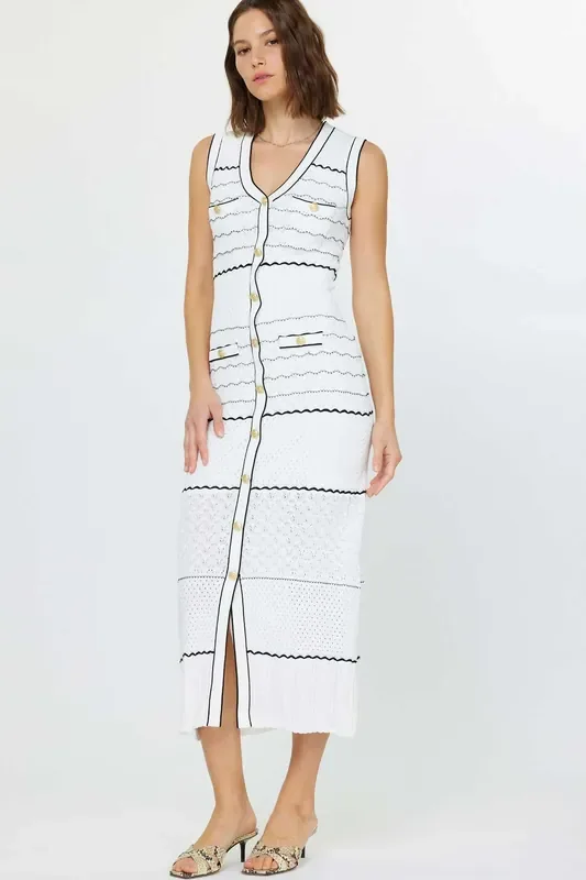 Captains Babe Gold Button Sleeveless Knit Dress • White