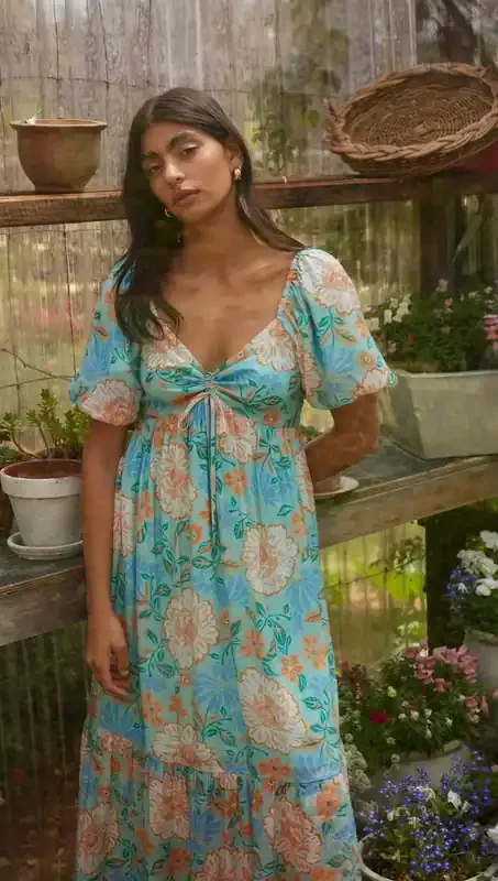 Evelyn Puff Sleeve Midi Dress • Mint Floral