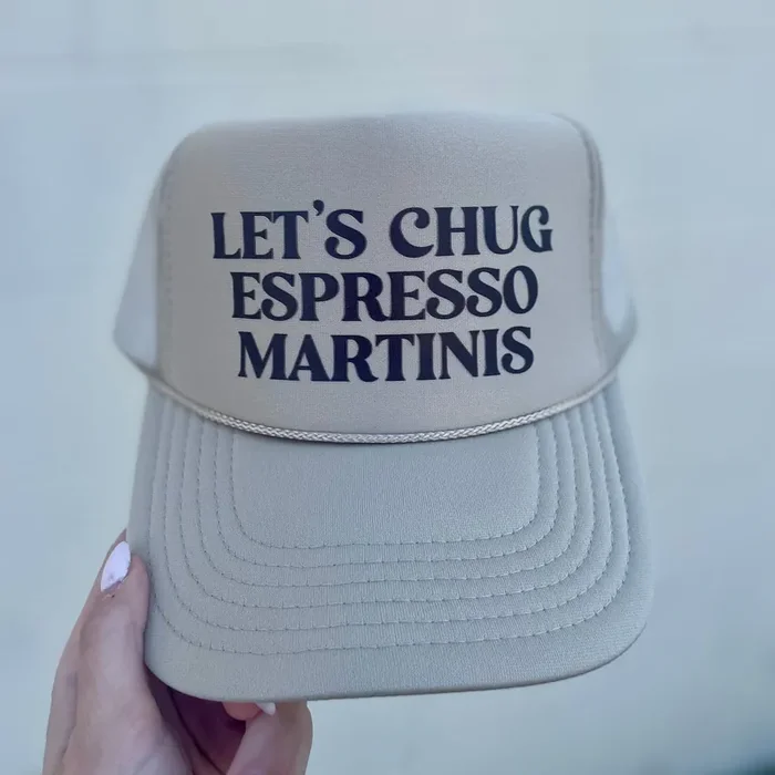 Let’s Chug Espresso Martinis Puff Hat • Tan