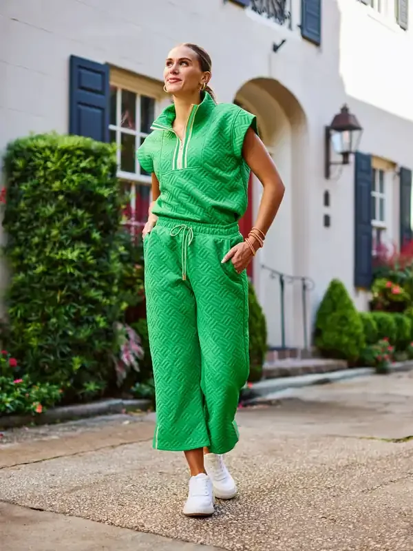Quilted Crop Jacket & Short Set • Ecru
