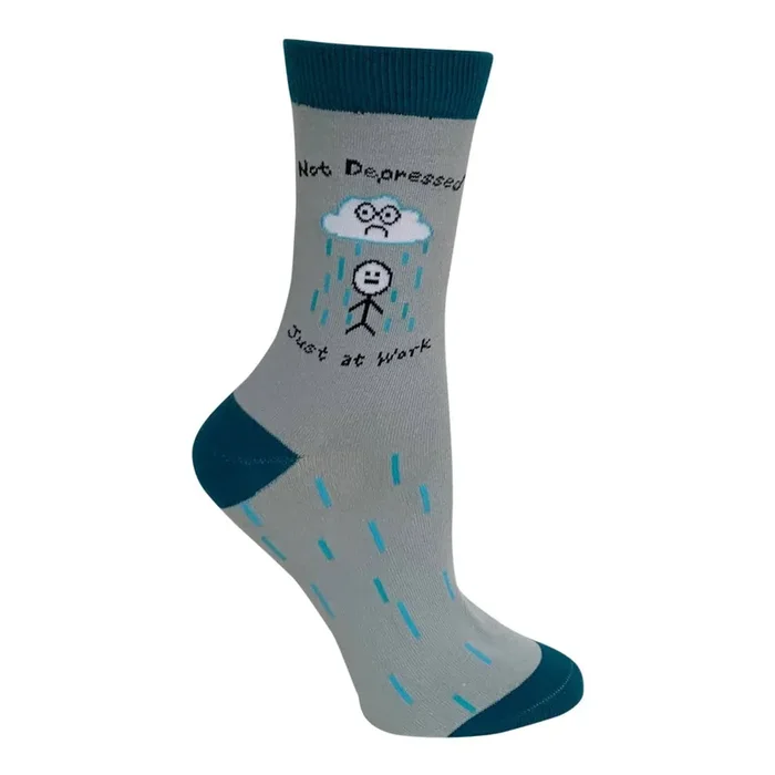 Not Depressed, Just at Work Women‘s Crew Socks Gray and Blue Hues