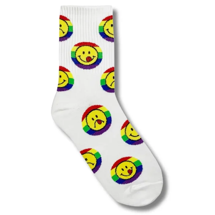 Smile Rainbow Women‘s Crew Socks in White 80s Pride LGBTQ [Size 5-10]