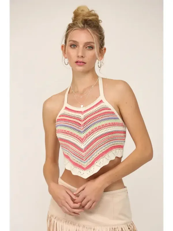 Yarn Halter Sweater Tie Top • Pink Multi