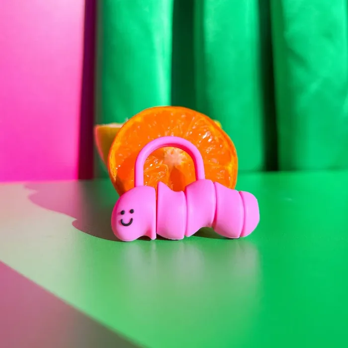 Worm Straw Cover in Pink Cute Silicone Straw Topper