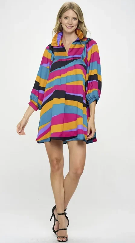 Savannah Ruffle Collar V Neck Dress • Havana Nights