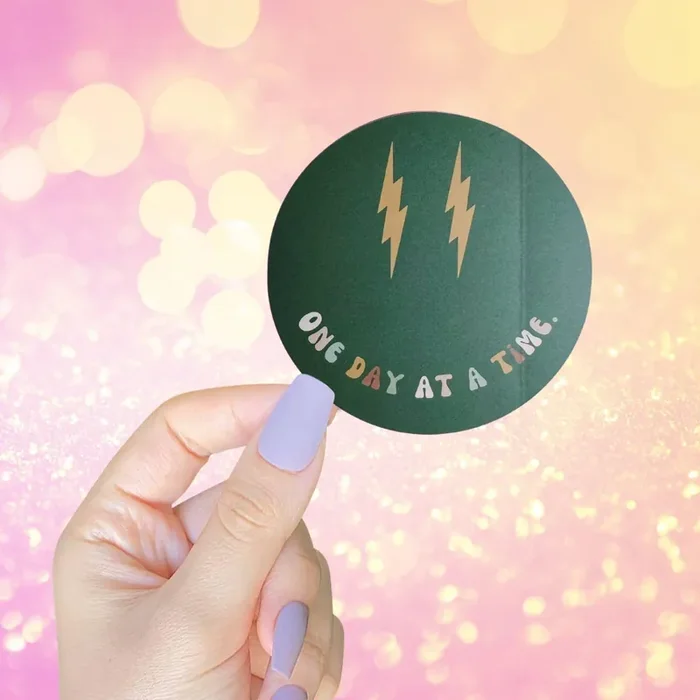 One Day At A Time Sober Sticker, Sobriety Gifts Lightning Eyes Emoji Vinyl Die Cut Decal