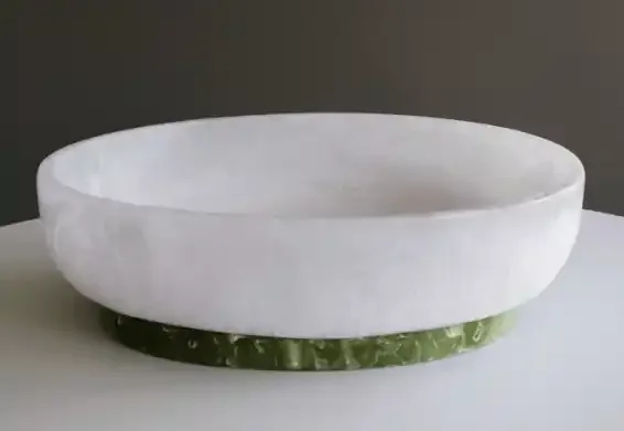 Resin Rio Large Oval Bowl with Base – White and Green – Beatiz Ball