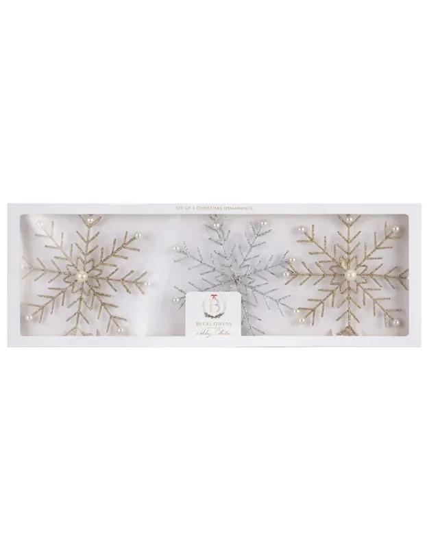 Becki Owens Set 3 Gold-Silver Snowflake Christmas Ornaments