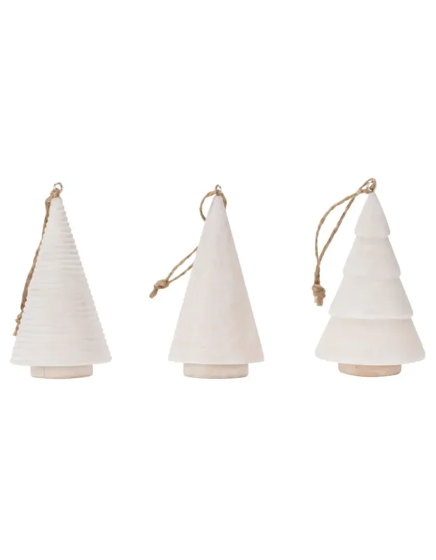 Becki Owens Set of 3 White Wood Turned Tree Christmas Ornaments