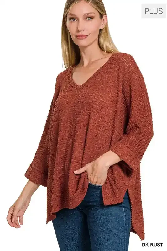 3/4 Sleeve Plus Jacquard Sweater