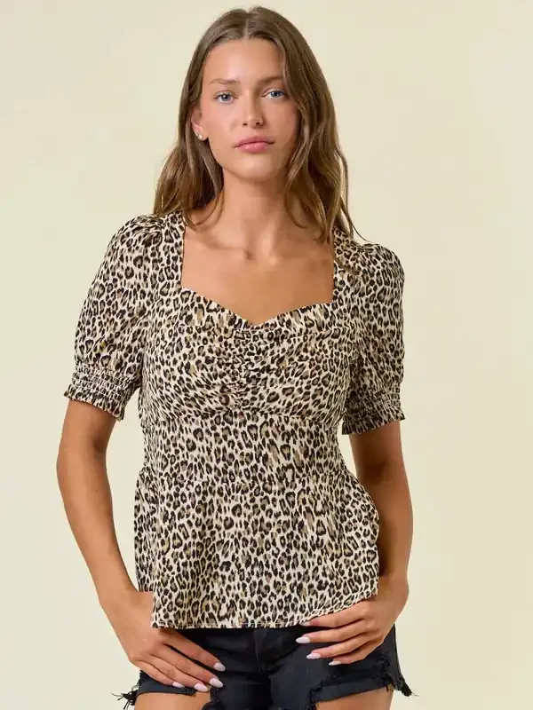 Animal Print Sweetheart Neckline Short Sleeve Top