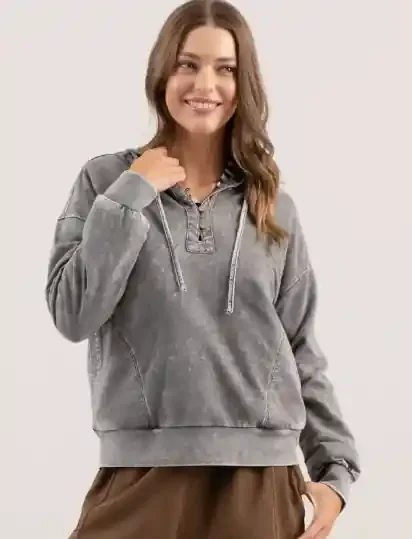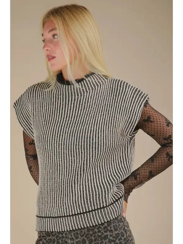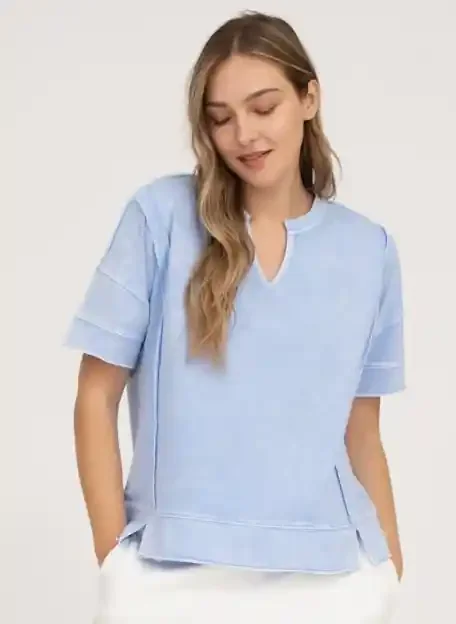 Washed Split Neck Patchwork Short Sleeve Knit Top
