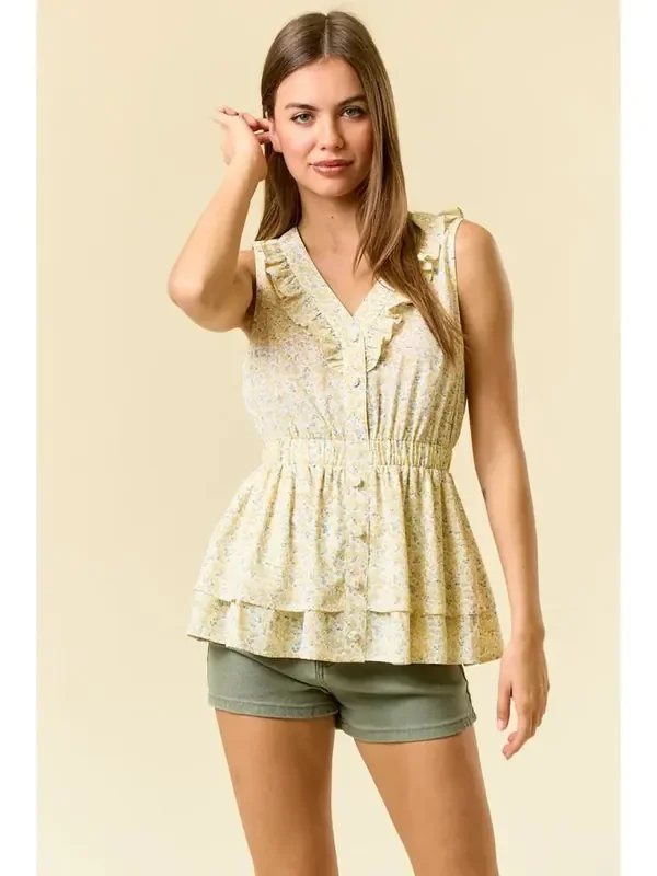 V-Neckline Sleeveless Elastic Waist Tiered Top