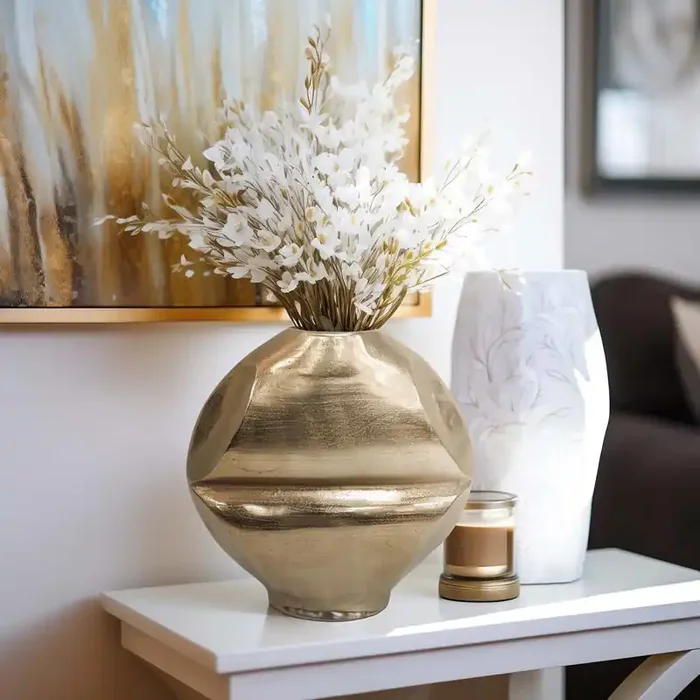 Blu from Sabavi Home Byram Champagne Metal Slit Vase