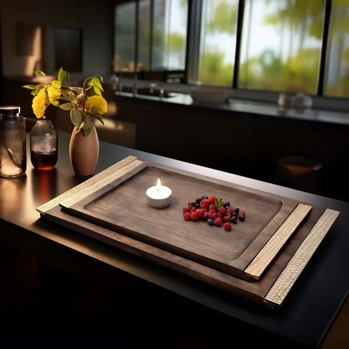 Blu from Sabavi Home Leaon Natural Wood Trays, Set of 2