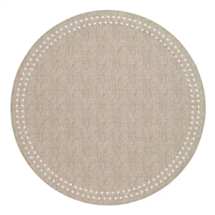 Pearls Round Vinyl Placemats (Beige/White) Set/4