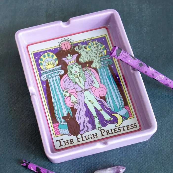 High Priestess Tarot Card Ashtray Smokers Ceramic Ashbin 4″ x 5.5″