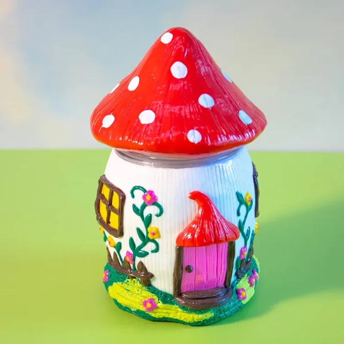 Mushroom House Stash Jar 3D Shaped Lid Edible Storage Container 6.25″ x 3.5″