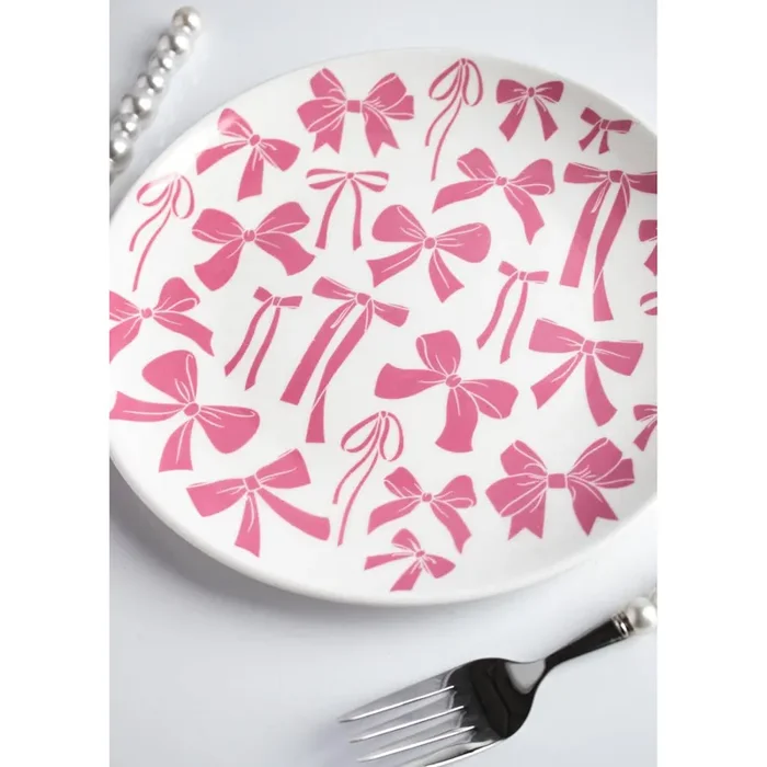 Pink Bow Dinner Plate Ceramic Dish Tableware 9″‘