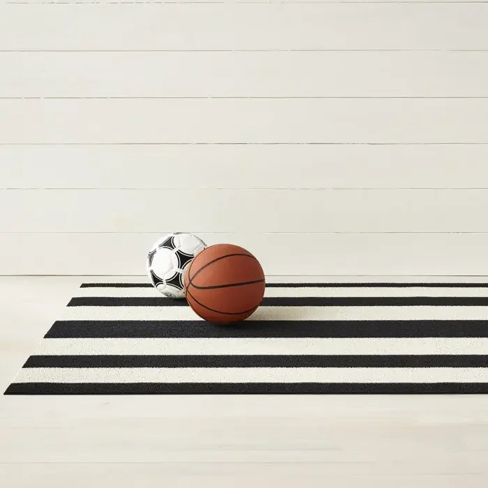 Chilewich Bold Stripe Shag Floor Mats (Black White)
