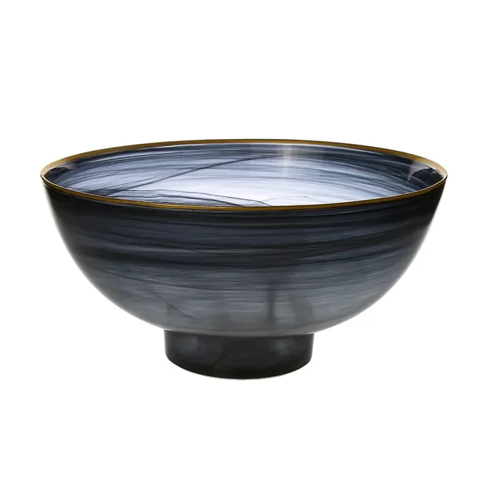 Black Alabaster Bowl with Base and Gold Border