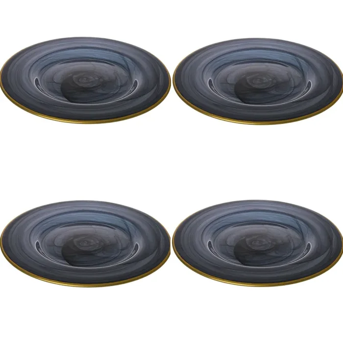 Black Alabaster Chargers with Gold Border, Set of 4