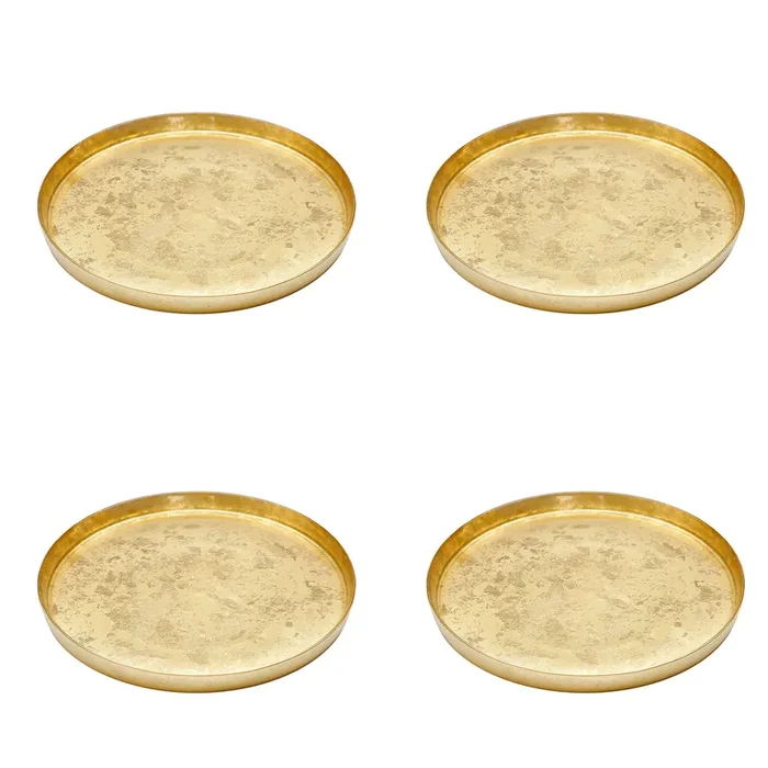Gold Glitter Dinner Plates with Raised Rims, Set of 4