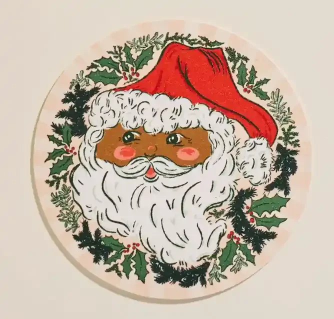 Santa Christmas Round Bent Birch Tray