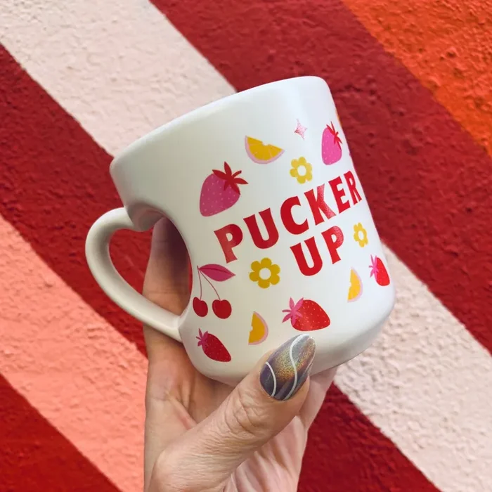 Valentine‘s Pucker Up Heart Shaped Handle Mug Stoneware Tea Coffee Cup 12oz