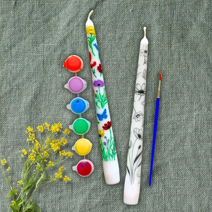 Wildflower Paintable Gift Set of 2 Tapers and Acrylic Paint