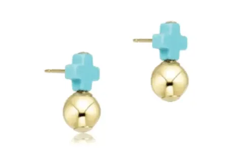 Signature Cross Turquoise Stud – Gold – Enewton
