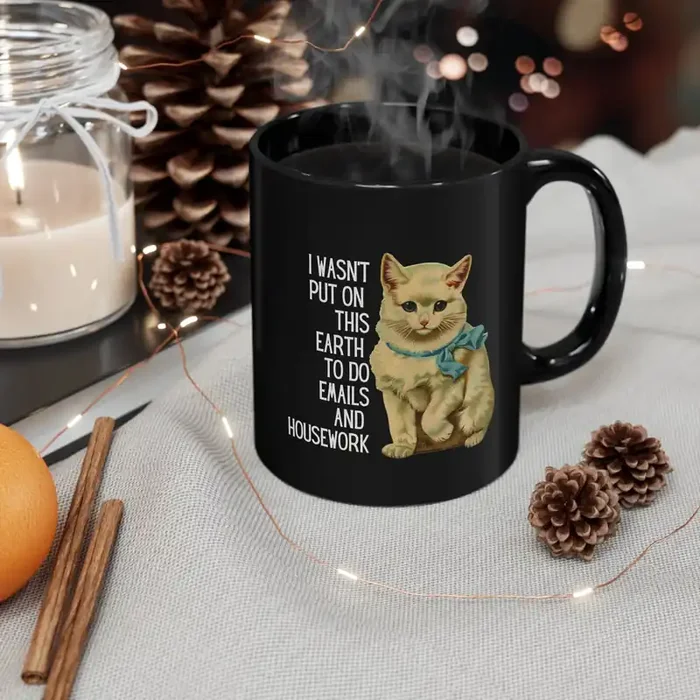 I Wasn‘t Put On This Earth To do Emails And Housework Black Kitten Mug