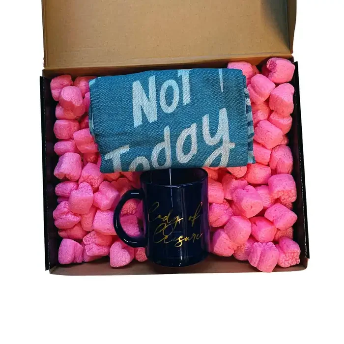 Lady of Leisure Gift Box with Compostable Pink Heart Packing Peanuts