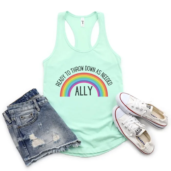 LGBTQ Ally Ready To Throw Down Rainbow Women‘s Ideal Racerback Tank