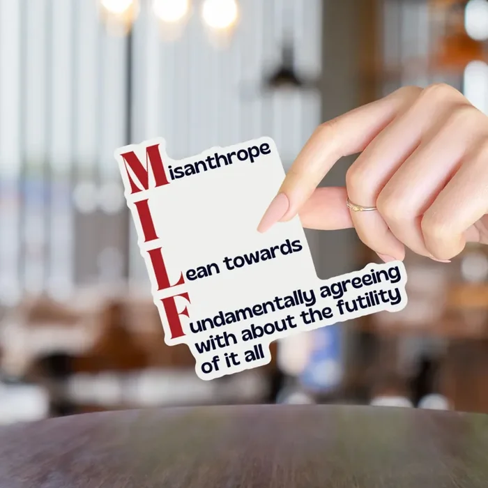 MILF Misanthrope I Lean Towards Fundamentally Agreeing With About the Futility of It All Glossy Die Cut Vinyl Sticker 2.95in x 2.91in
