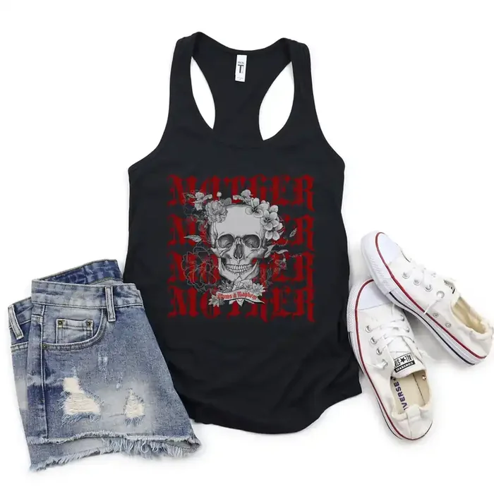 Moms and Mayhem Heavy Metal Skull Themed Women‘s Ideal Racerback Tank