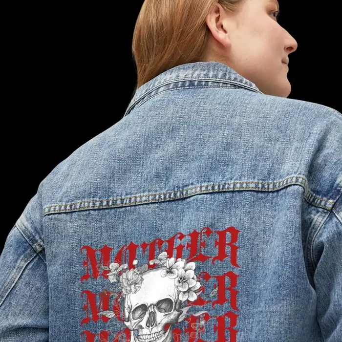 MOTHER Moms and Mayhem Heavy Metal Skull Women‘s Denim Jean Jacket