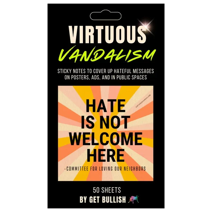 Virtuous Vandalism “Hate is Not Welcome Here” Sticky Notes 3″ x 3″ Pack of 50 Combat and Cover Offensive Public Messages with Adhesive Protest Notes