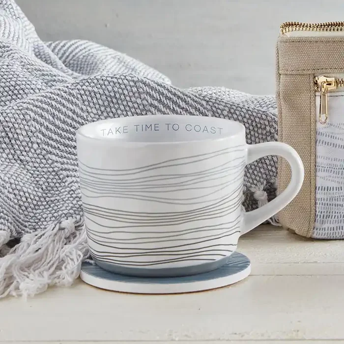 Hidden Message Take Time To Coast Cozy Mug Hand Painted Coffee Tea Stoneware Cup 15oz.