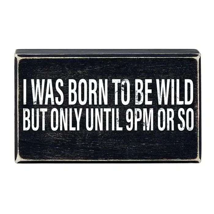 I Was Born To Be Wild But Only Until 9PM or So Black Wooden Box Sign Home Office Wall Desk Decor