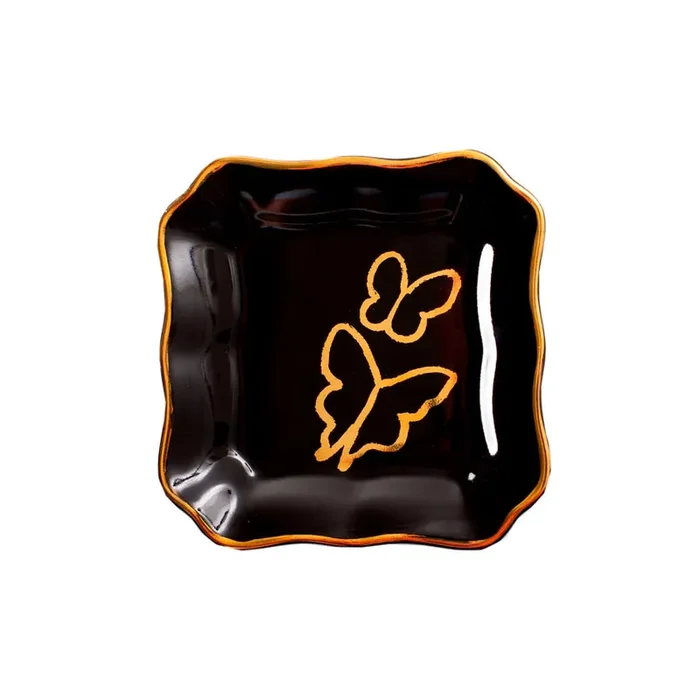 Duet Butterflies Portrait Plate with Hand-Painted Gold Rim, Black