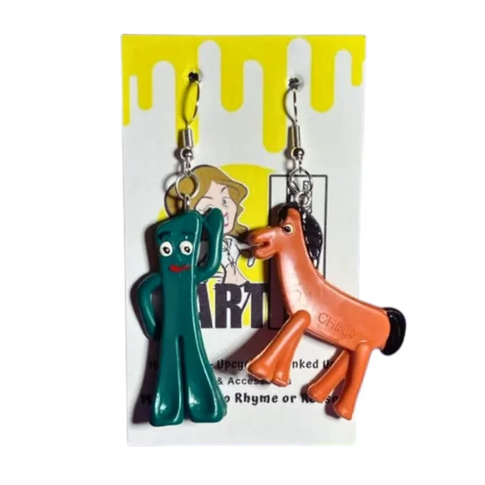 Gumby and Pokey Earrings Reversed 70s Vintage Mini Figures Upcycled Fashion Jewelry