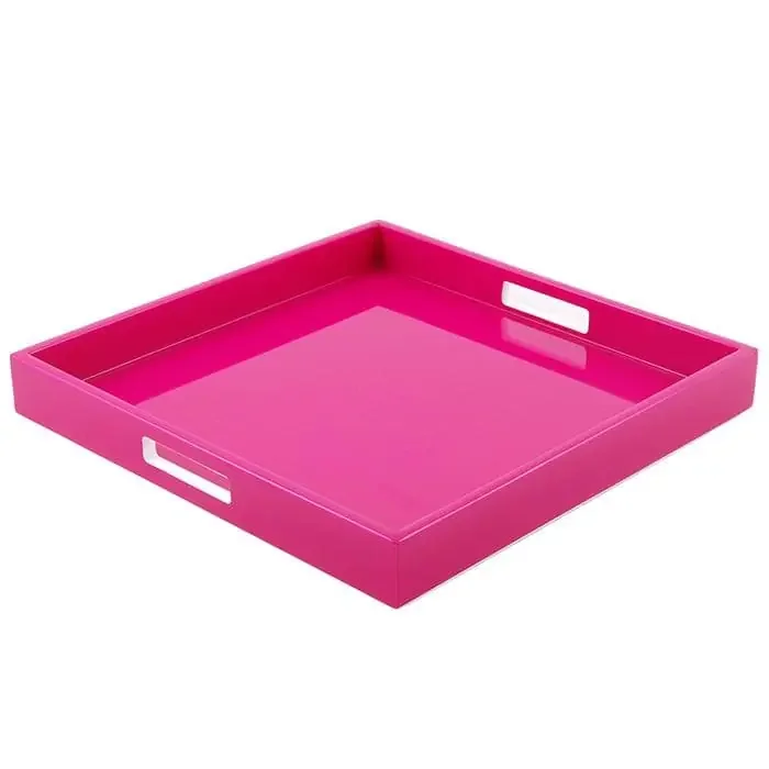 Lacquer Square Tray – Hot Pink Fabric Inlay