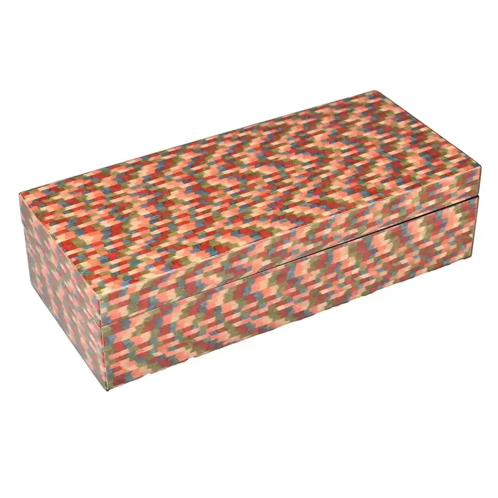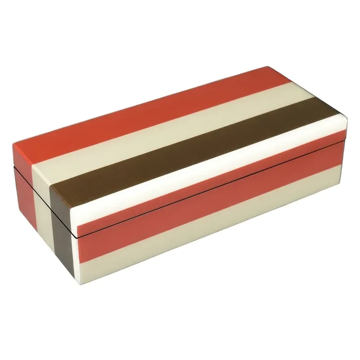 Lacquer Long Pencil Box (Red, Taupe, Dark Brown and White Stripe)