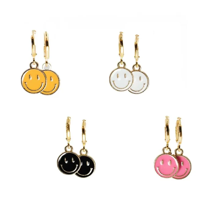 Retro ‘80s-‘90s Dual Happy Face Charm Earrings 4 Color Options Yellow, Black, White, Pink