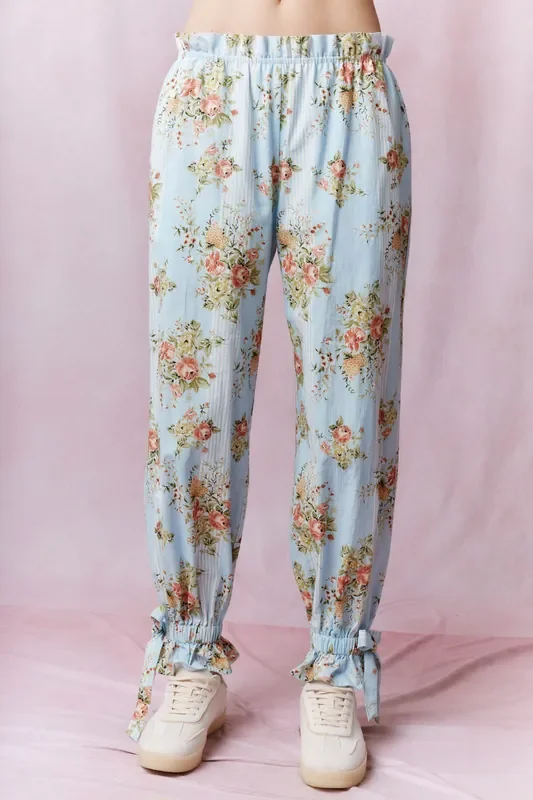 Floral Love Cotton Linen Ruffle Pants • Lt Blue