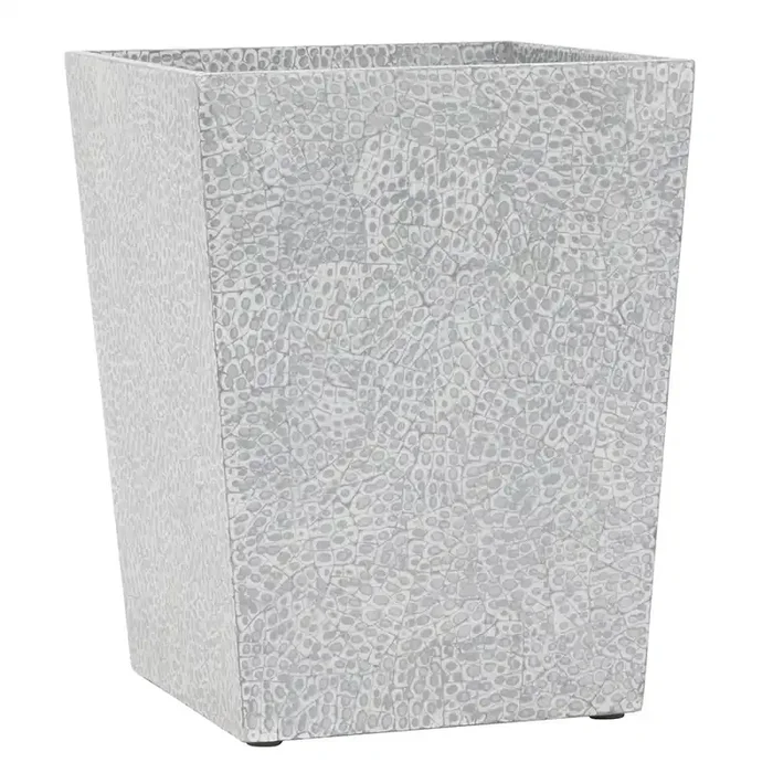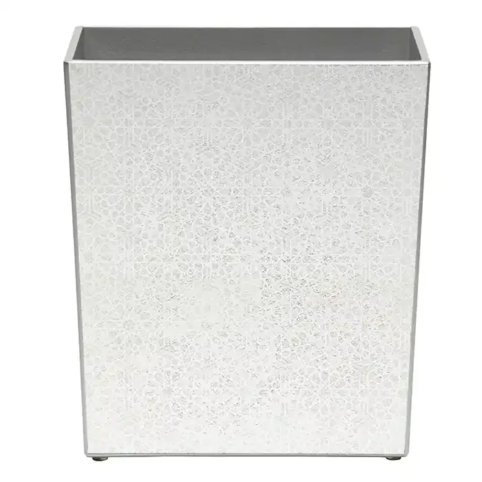 Caro Medallion Painted Mirror Rectangle Waste Basket (Silver)