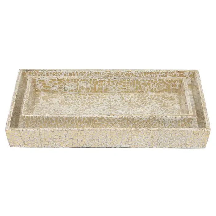 Caro Medallion Painted Mirror Tray Set (Silver)