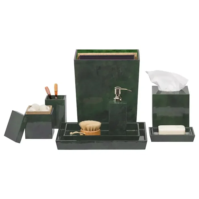 Carlow Faux Vellum Bathroom Accessories (Emerald Gloss)